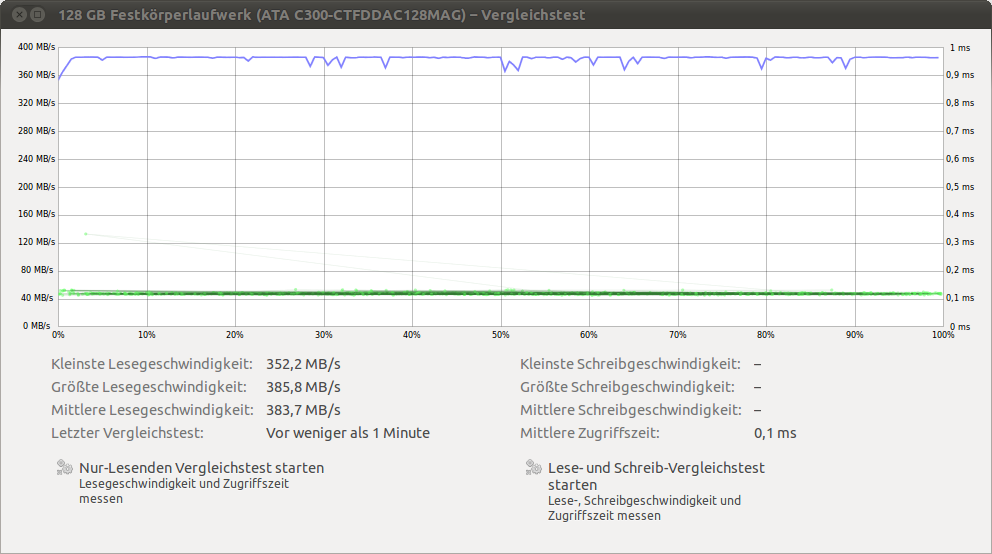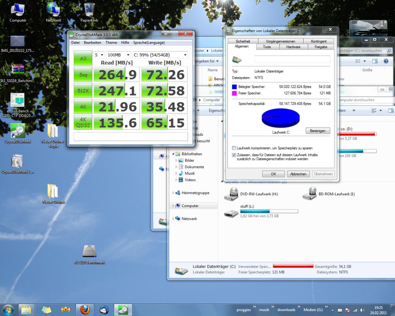 Habe sozusagen nur durch Zufall unter Windows den ASS Bench gemacht, mein Win7 OS ist in keiner Weise auf SSD optimiert, die C300 is eigentlich die Linux System bzw /home Platte.Ob Trim arbeitet habe ich auch nicht getestet, unter Linux funktioniert Trim, in Windows musste doch die ganze Platte vollschreiben ,und dann wieder löschen um zu sehen ob es wirklich aktiv ist, so wie ich das verstanden habe.