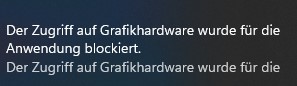 mir fällt gerade ein, manchmal bekomme ich von Windows ne Meldung das irgendwie der Zugriff auf die grafikhardware blockiert wurde oder so ähnlich
