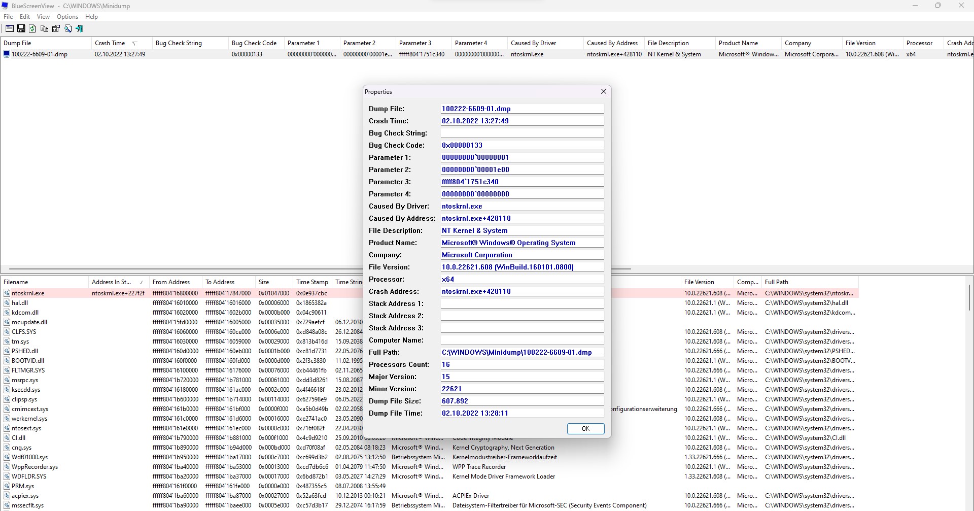 Achja, ich habe ganz genau eine MiniDump Datei gefunden bei mir. vom 02.10.2022 - damit kann ich allerdings noch weniger anfangen. Ich hänge die mal mit ran :x
