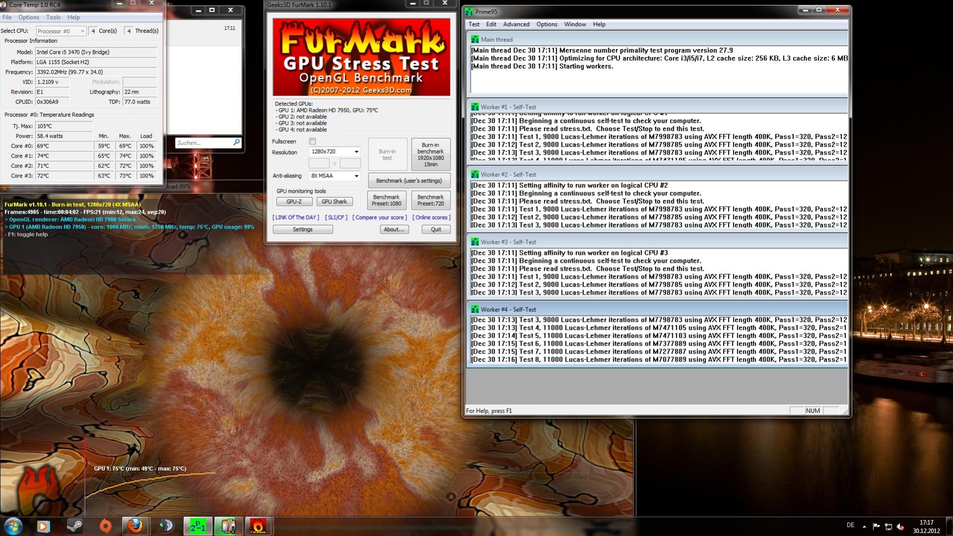 bei 15 min prime 95 und furmark tut sich einfach nichts. pc ist extrem in der ausführung der programme aber das ist denke ich mal normal. temps sind auch ok siehe bild.jedoch läuft meine cpu nur auf 3400 megaherz. und nicht auf 3.6ghz