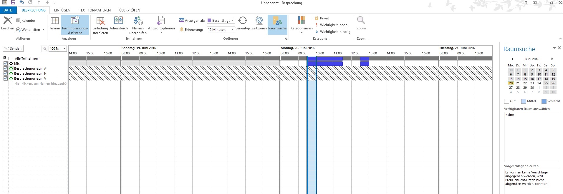 Es können keine Vorschläge angegeben werden, weil Frei/Gebucht-DAten nicht abgerufen werden konnten.