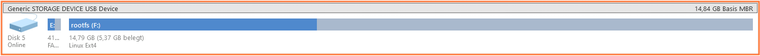 Mit dem Windows Datenträgerverwaltungs-Tool kann ich das ganze jedenfalls nicht nachvollziehen und dort wird mir auch nichts entsprechendes angezeigt. Bspw. GPARTED zeigt es an, auch bei einer Mikro SD-Karte aus dem Raspberry Pi mit der Distro DietPI.