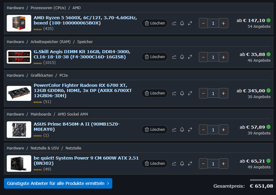 Für AM5 und DDR5 reicht das Geld leider nicht, deshalb würde ich sagen das 16GB DDR4 ausreichen werden.