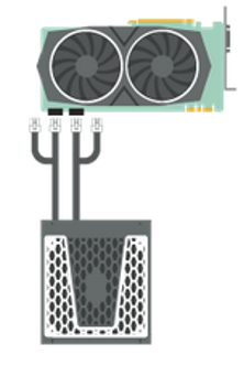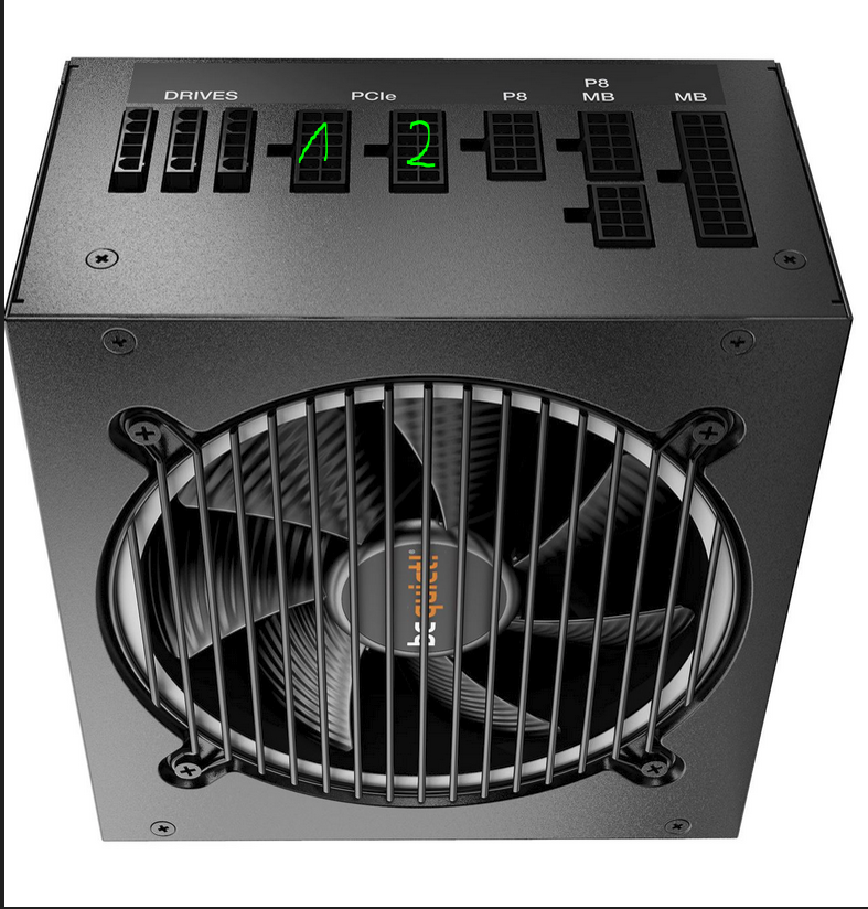 Aber zwei dieser Kabel nimmst du und jeweils eins in die beiden PCIe Anschlüsse am Netzteil,