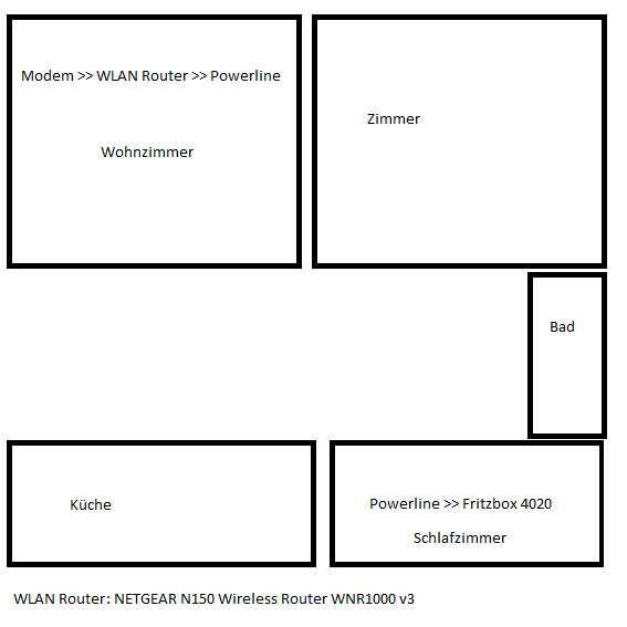 Mein ISP ist Unitymedia, bei den Powerline Adapter handelt es sich um TP-LINK TL-PA2010PKIT und mein Betriebssystem ist Windows 10. WLAN Router steht als Text im Bild.