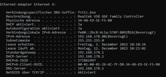 Von dort gehe ich mit einem LAN Kabel in den Laptop.