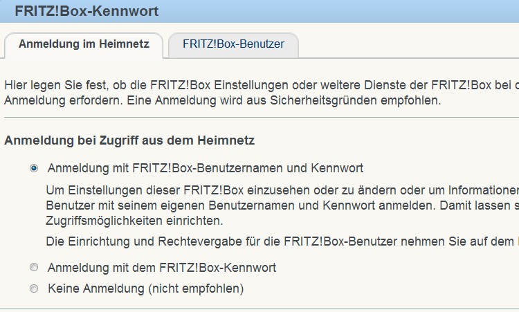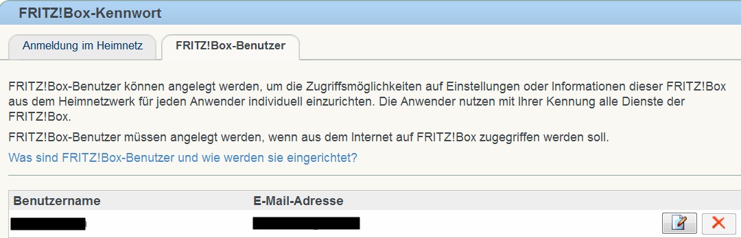 - Benutzer ist mit Benutzernamen und PW eingerichtet