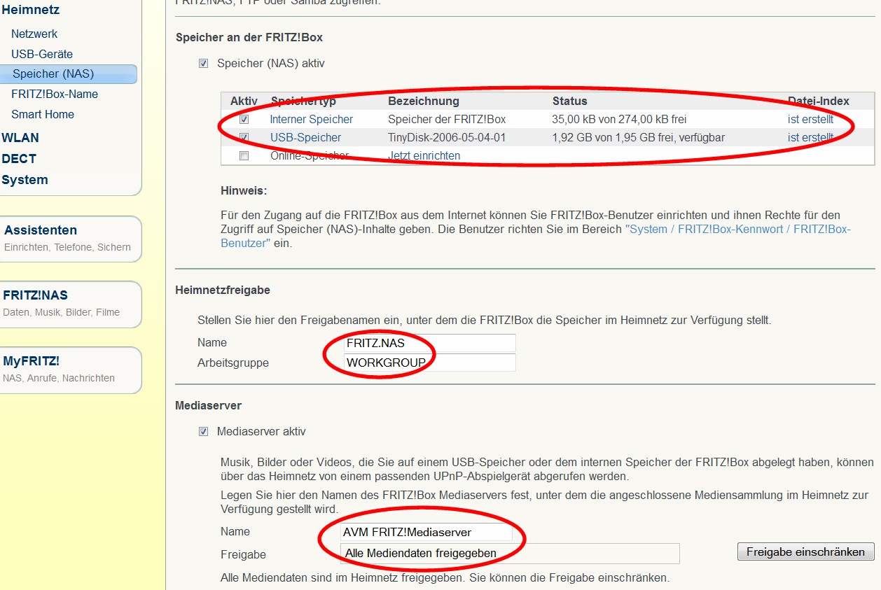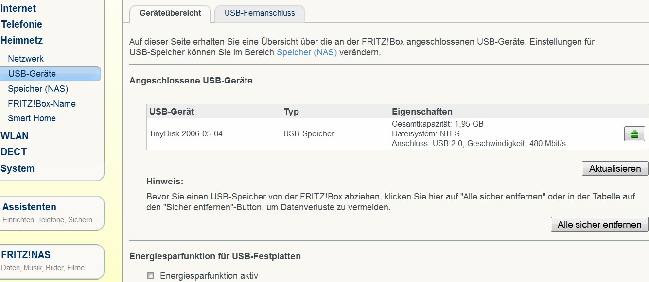 - Im Heimnetz unter "USB-Geräte" wird der Stick erkannt