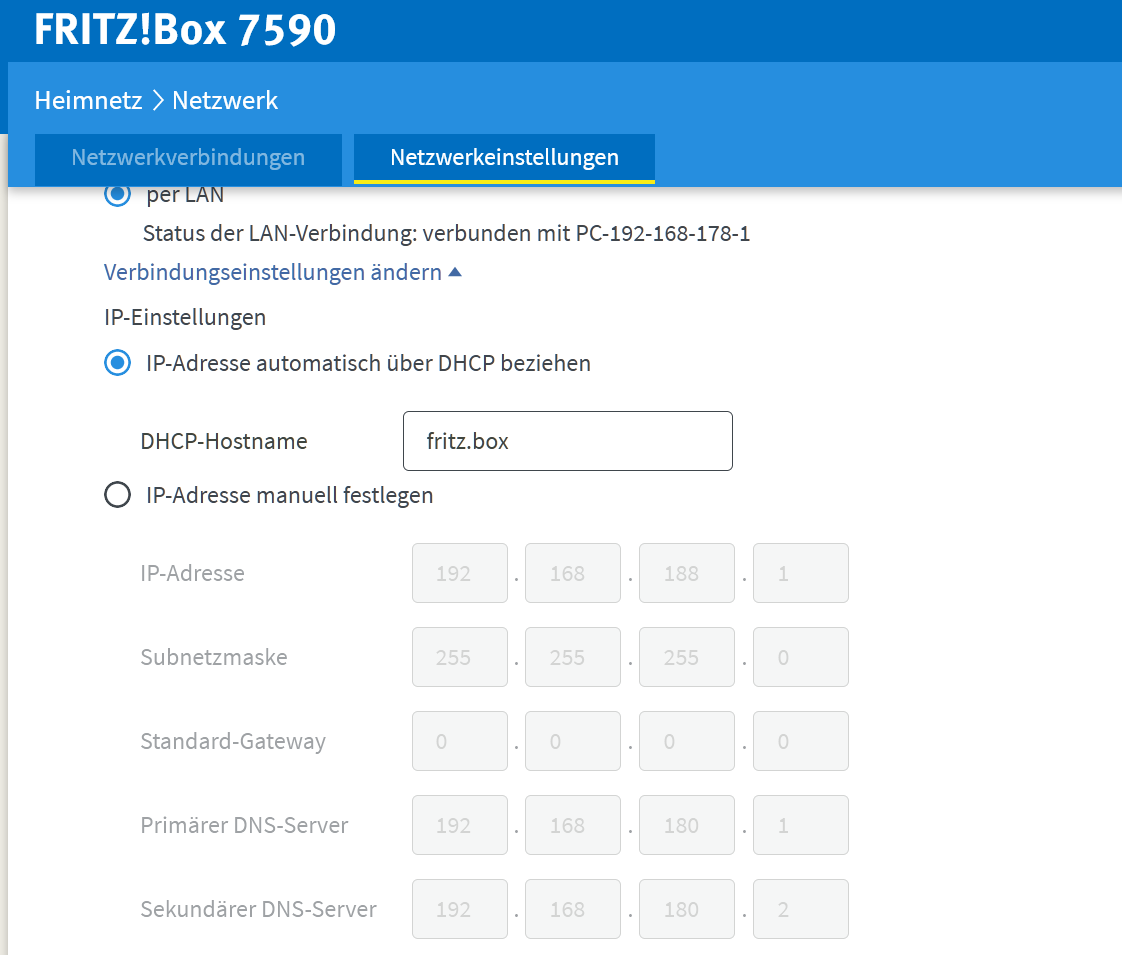 fritz 7590 bekommt das internet von der 6590 aber die soll eine eigene Netzwerk umgebung haben, sodass 2 netzwerke da sind und die geräte nicht netzwerk übergreifend zugreifen können.