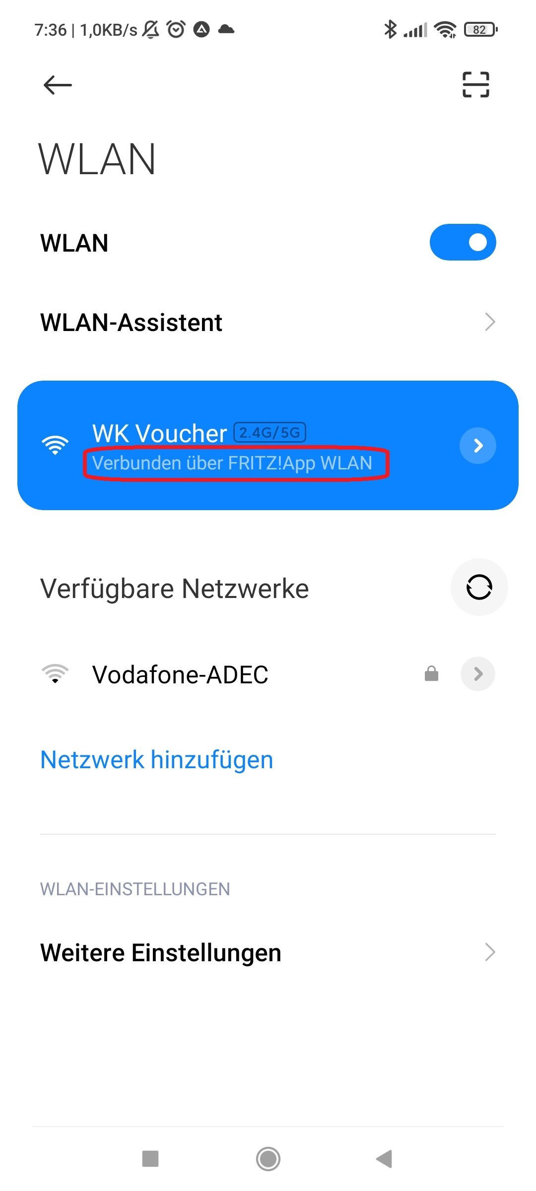 Das WLAN-Netz befindet sich NICHT in meiner Handy-Netzliste (Netzwerk "entfernt") und auch den kompletten Cache der FRITZ!App habe ich schon gelöscht. Dennoch verbindet sich das Handy immer wieder automatisch mit diesem Netz und in der WLAN-Liste steht auch deutlich "Verbunden über FRITZ!App WLAN".