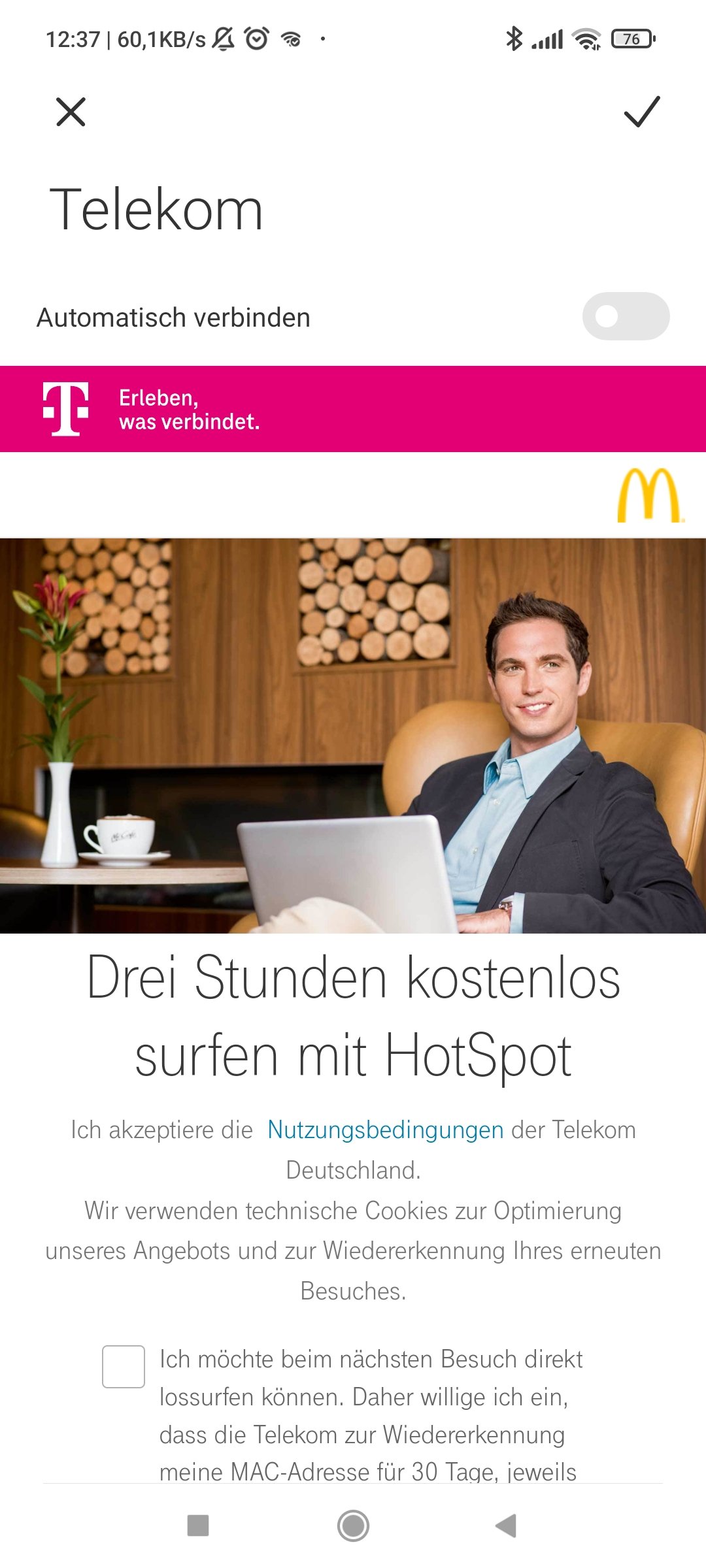 Leider ist es seither so, dass mein Handy, sobald ich mich auf der Arbeit befinde, mit dem Voucher-WLAN verbindet, weil es dieses als frei zugänglich erkennt, ich de facto ohne Voucher aber logischerweise gar nichts damit anfangen kann.