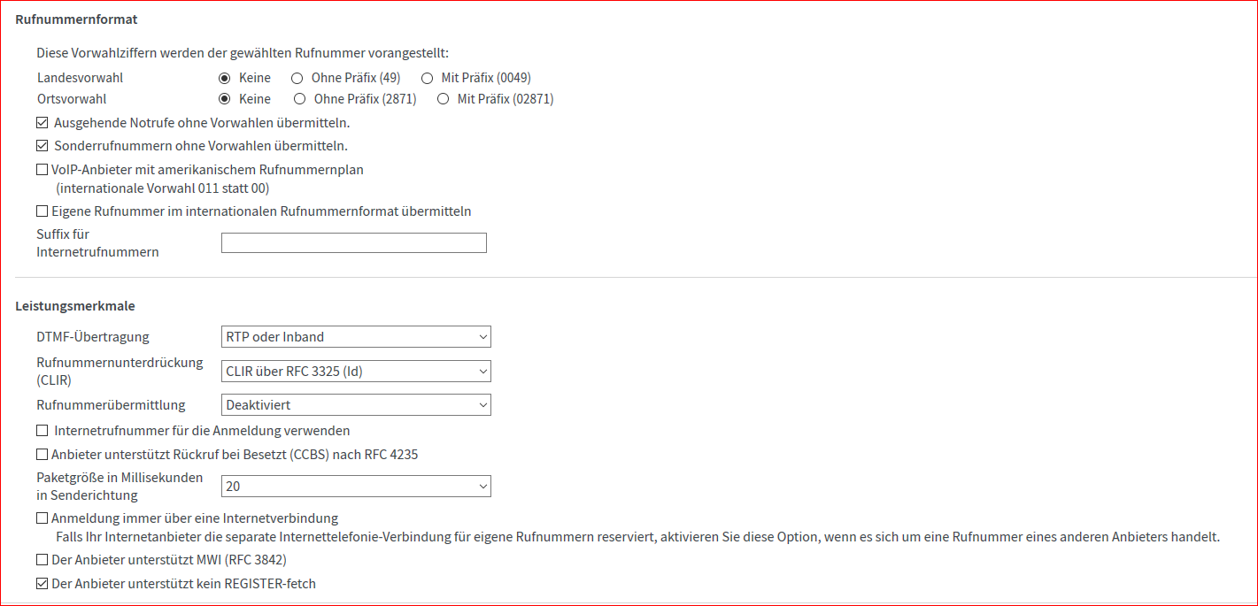 SIP-Zugangsdaten alle korrekt sind in der Fritte eingetragen OK