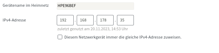 Ich gehe unter Einstellungen/Netzwerk, klicke auf den Stift und der Dialog fehlt einfach wo man den Hacken setzen kann. Bei jedem anderem Gerät im Netzwerk ist das Möglich, hier z.B mein Drucker: