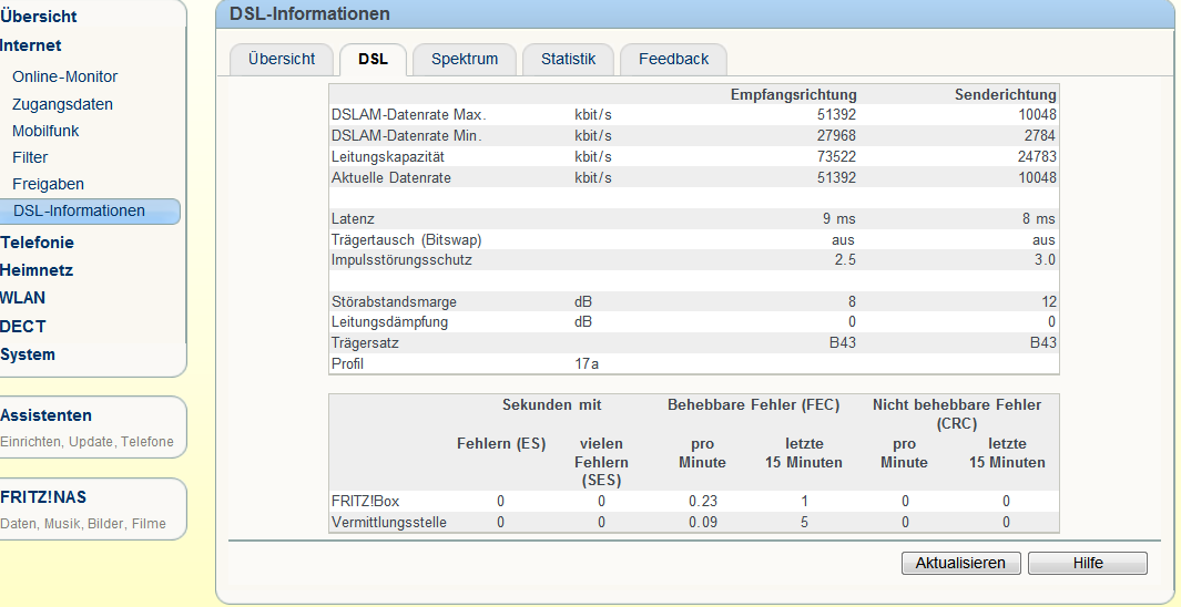 seit Kurzem habe ich VDSL (50 MB/s) und eine Fritz.Box 7360 SL.