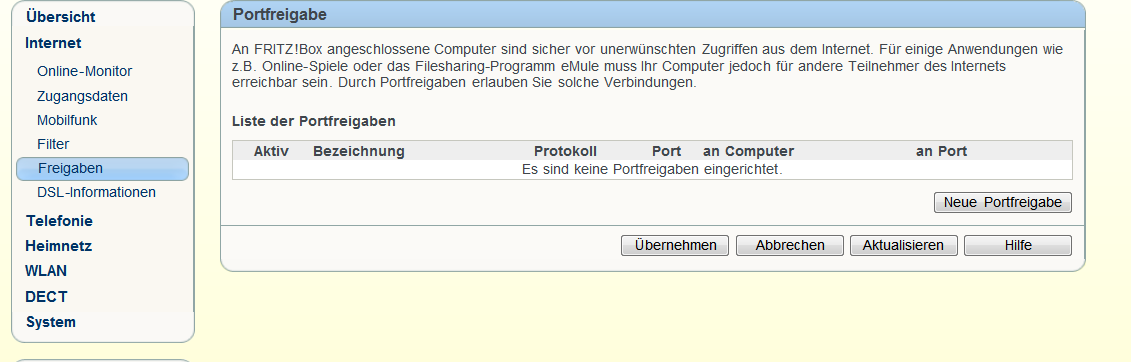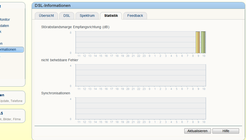 Manchmal bekomme ich keine Verbindung zum Netz. In den Fehlermeldungen der FritzBox steht, "Verbindung zum Online-Speicher konnte nicht hergestellt werden. Kein USB-Speicher vorhanden", oder kein Gateway vorhanden.