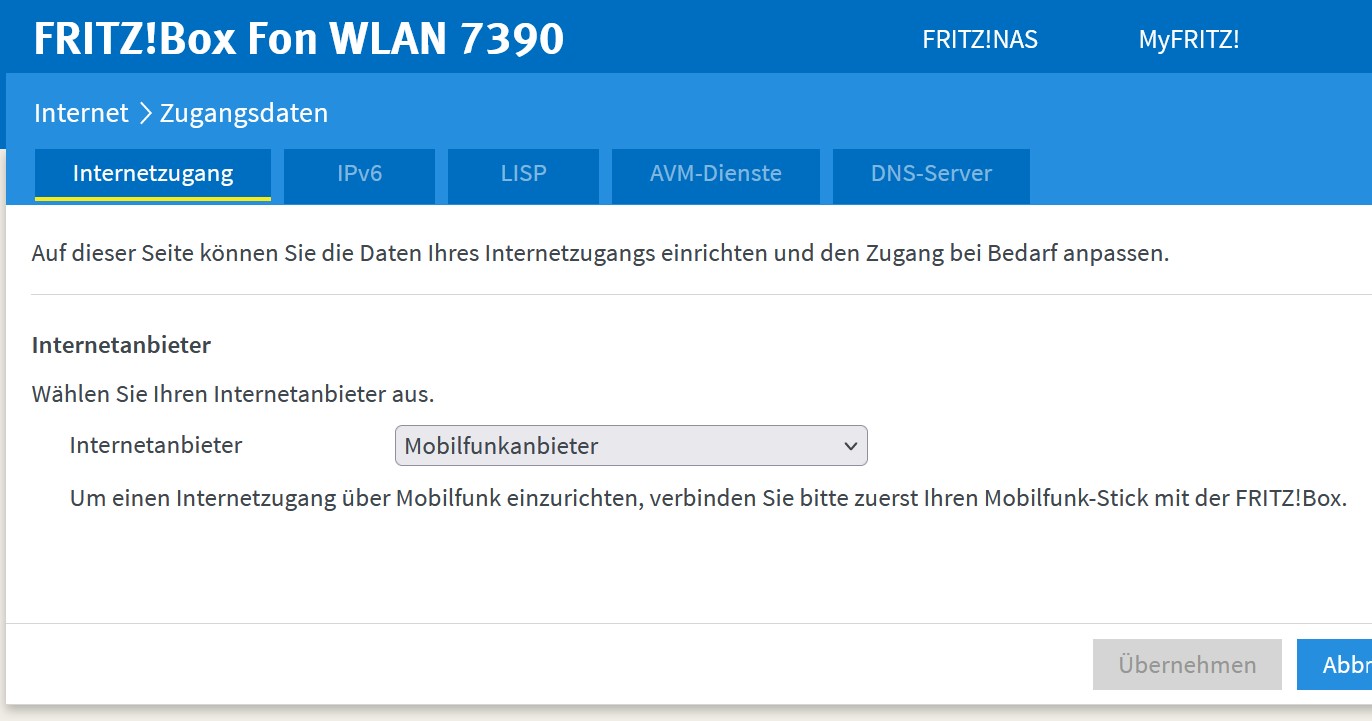 ich würde gerne meine Fritz!Box 7390 als Router einsetzen, den ich mit dem Hotspot meines Mobiles verbinde.