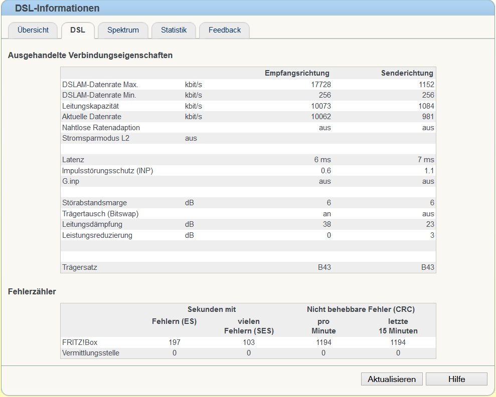 Habe jetzt mal die DSL-Informationen von heute früh mit hochgeladen!