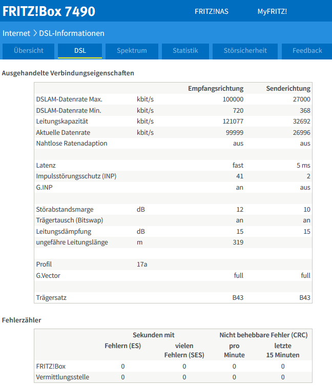 Fritz Box 7412 Ursache für "geringe" Datenrate?
