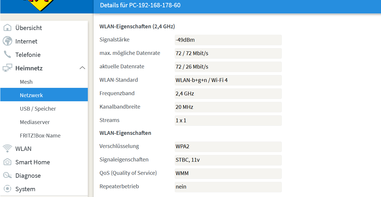Der Rechner ist nicht mal 3 meter vom Router entfernt - Keine Wand dazwischen.