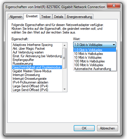 Punkt 3. - Manuell: 1.0 GBit/s Vollduplex