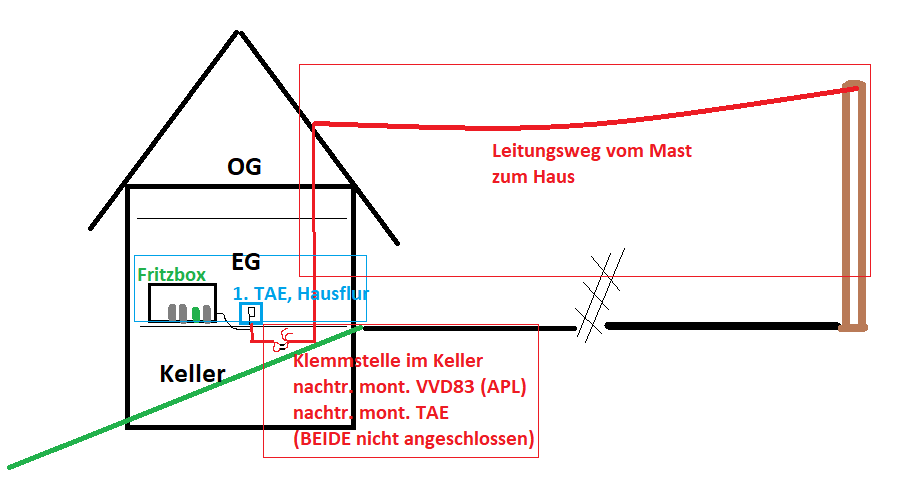 Nach der Beschreibung der Aktionen der Techniker im ersten Post bin ich davon ausgegangen, dass es jetzt sogar zwei "erste" TAE-Dosen im Keller gibt, wovon die Techniker einmal die eine und dann wieder die andere angeklemmt haben. An der aktuell angeklemmten "ersten" TAE-Dose kann man den Test mit der FRITZ!Box wiederholen, damit werden alle anderen TAE-Dosen automatisch deaktiviert.omavoss schrieb:Bitte die Begrifflichkeiten klären. Die erste TAE-Dose muss nicht unbedingt die Erste TAE-Dose sein (man beachte das große "E" bei Erste). Die Erste TAE-Dose ist diejenige TAE-Dose, die direkt im APL auf die kommenden Leitungen geklemmt ist, es dürfen keinerlei erste, zweite, dritte Dosen an dieser Leitung folgen, denn die wären allesamt Störungsquellen.
