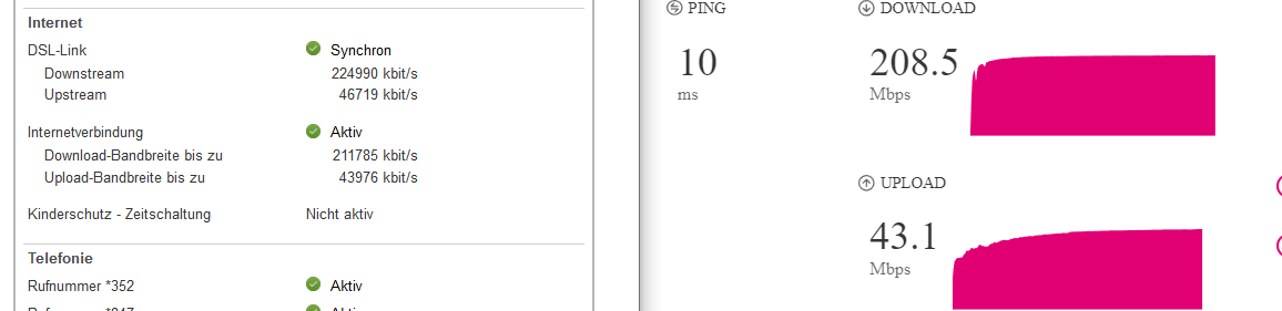Ich habe einen VDSL 250 Anschluss von der Telekom.