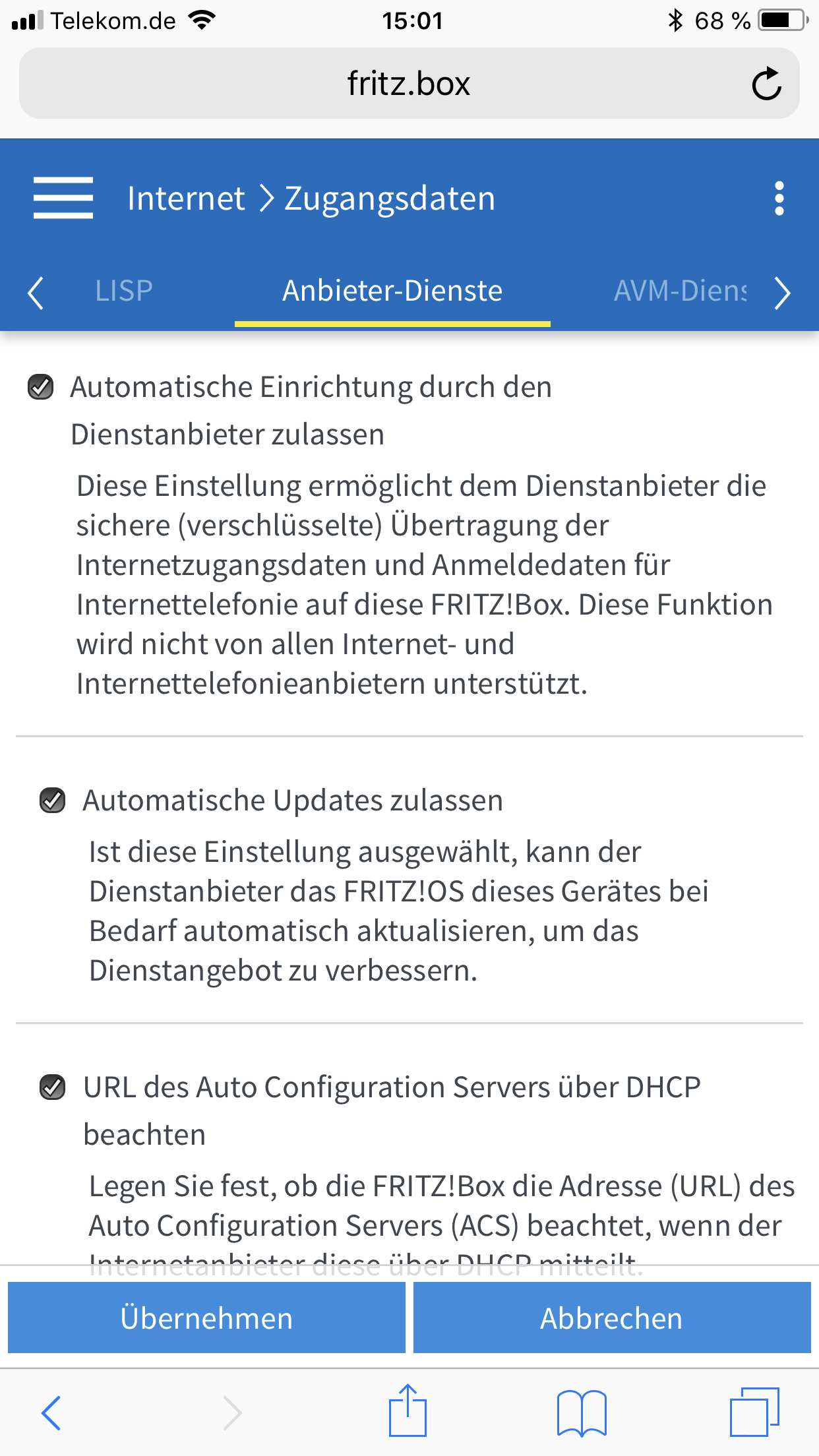 Wenn es sich um dein eigenes Gerät handelt (also kein Mietgerät) du selbst.rivasol schrieb:Und wer ist zuständig für die Eintragung der übrigen Parameter in der Fritzbox?