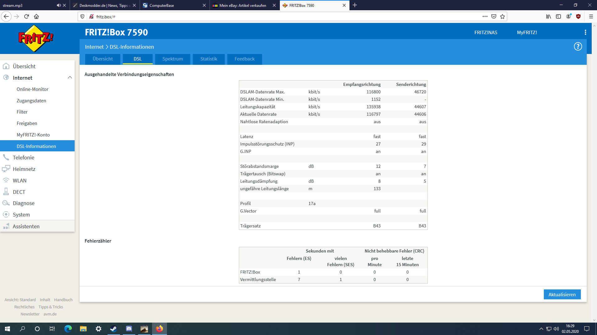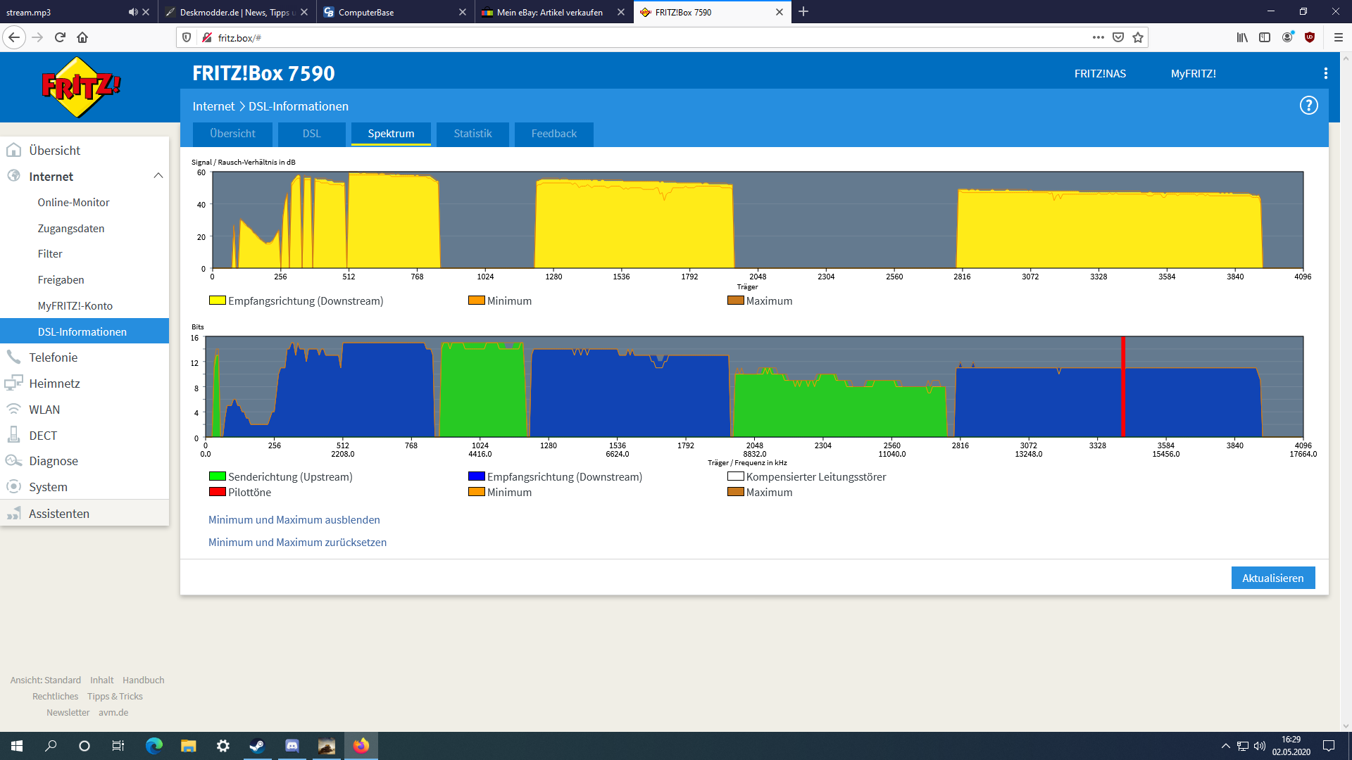 kleine Frage in die Runde. Anbei mal ein paar Ausschnitte aus der FritzBox und deren DSL Werte. Mir macht das Spektrum etwas sorgen. Ist das in Ordnung oder Grund für Sorge? Der Anschluss wurde am 22.04.2020 geschalten, ist also noch relativ frisch.