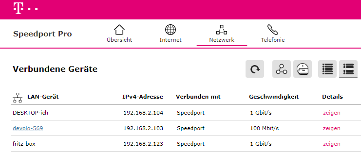 Ich möchte meine FRITZ!Box als switch verwenden. Leider kann ich mit der vergebenen Adresse vom Router (Speedport-Pro) die FritzBox über LAN nicht erreichen.