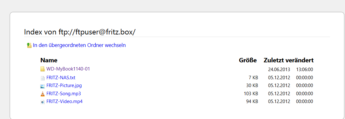 Also FTP Server einrichten hat schonmal geklappt. Über ftp://ftpuser:KENNWORT@fritz.box habe ich Zugriff darauf.