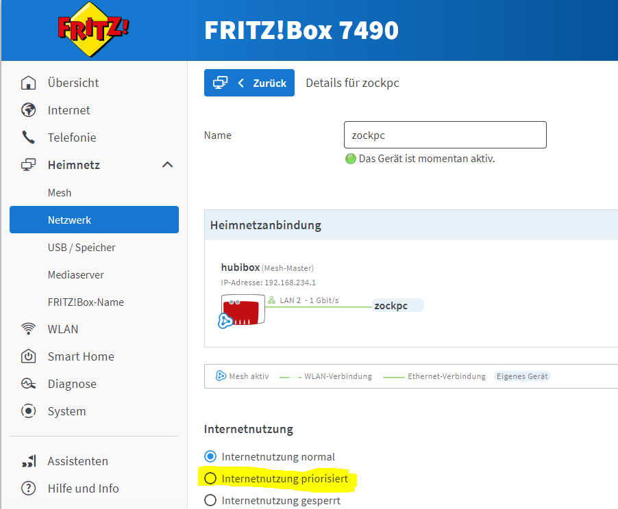 hab jetzt 90% für das Heimnetz reserviert und alle Geräte bis auf die PS5 in das gastwlan gesteckt.