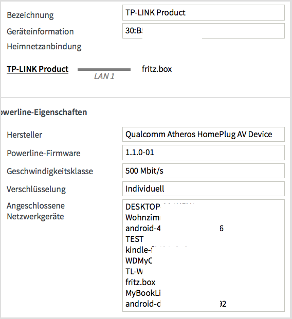 zeigt er beim Gerät das an LAN1 hängt, die angeblichen angeschlossenen Geräte wie FB, meinen Server, Freifunk-Router usw. an; diese hängen aber an LAN2-3 über einen zusätzlichen Switch (zwar auch ein TP-Link, aber an LAN1 hängt nur der rPowerline-Adapter -> Powerline -> Telekom-Reciever/DLAN-Streaming-Box.