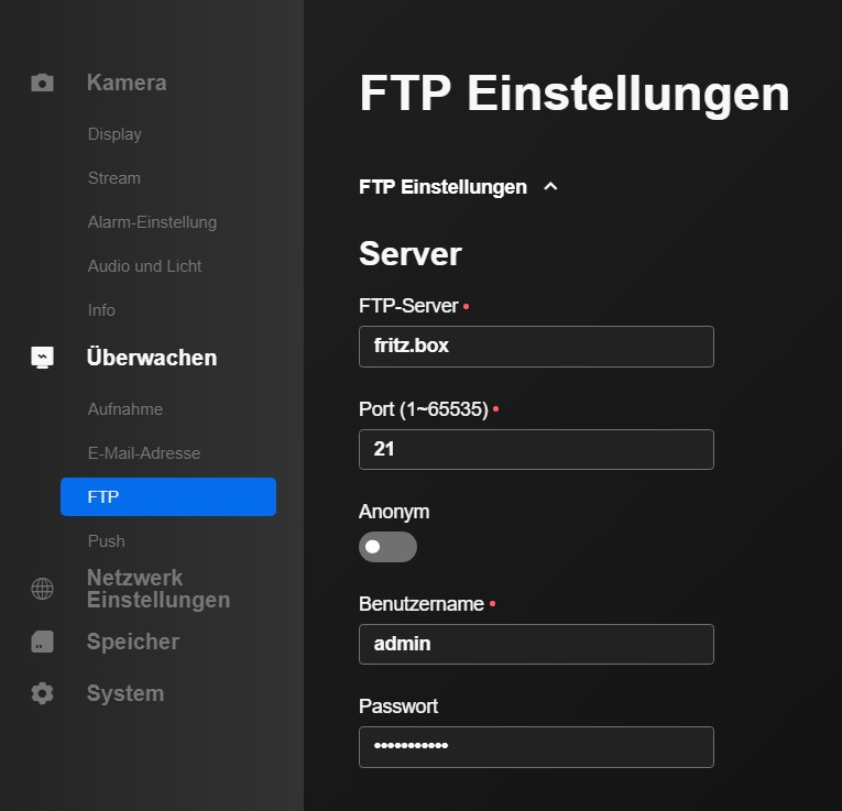 Zwei Minuten Google liefert das hier: https://reolink.com/de/newbie-leitf...ung-der-aufnahmen-ip-ueberwachungskamera/#ftp