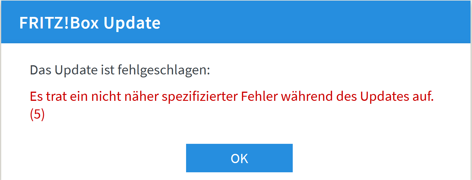 Habe die Fritz.Box schon neu gestartet und nochmal das Update heruntergeladen. Noch jemand mit dem gleichen Problem unterwegs? Offiziell findet man nicht wirklich was dazu, sämtliche weiteren Ergebnisse mit der gleichen Fehlermeldung sind von sehr alten Boxen.