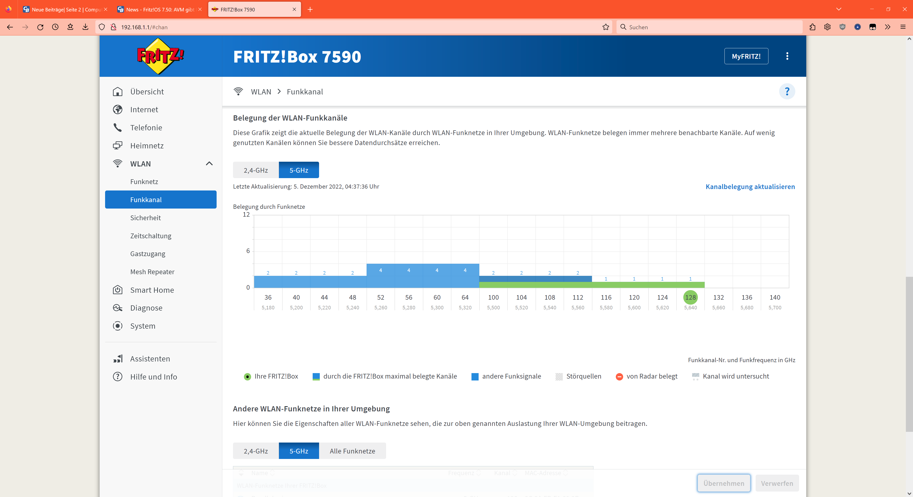 Da ich es aber vorher noch nie geprüft hatte, kann es gut sein, dass es schon immer nur 80 MHz waren, auch wenn die FB-GUI 160 MHz anzeigte?