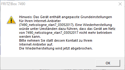 "...Eine Wiederherstellung würde u.U. dazu führen, dass das Gerät...nicht mehr betrieben werden kann.."