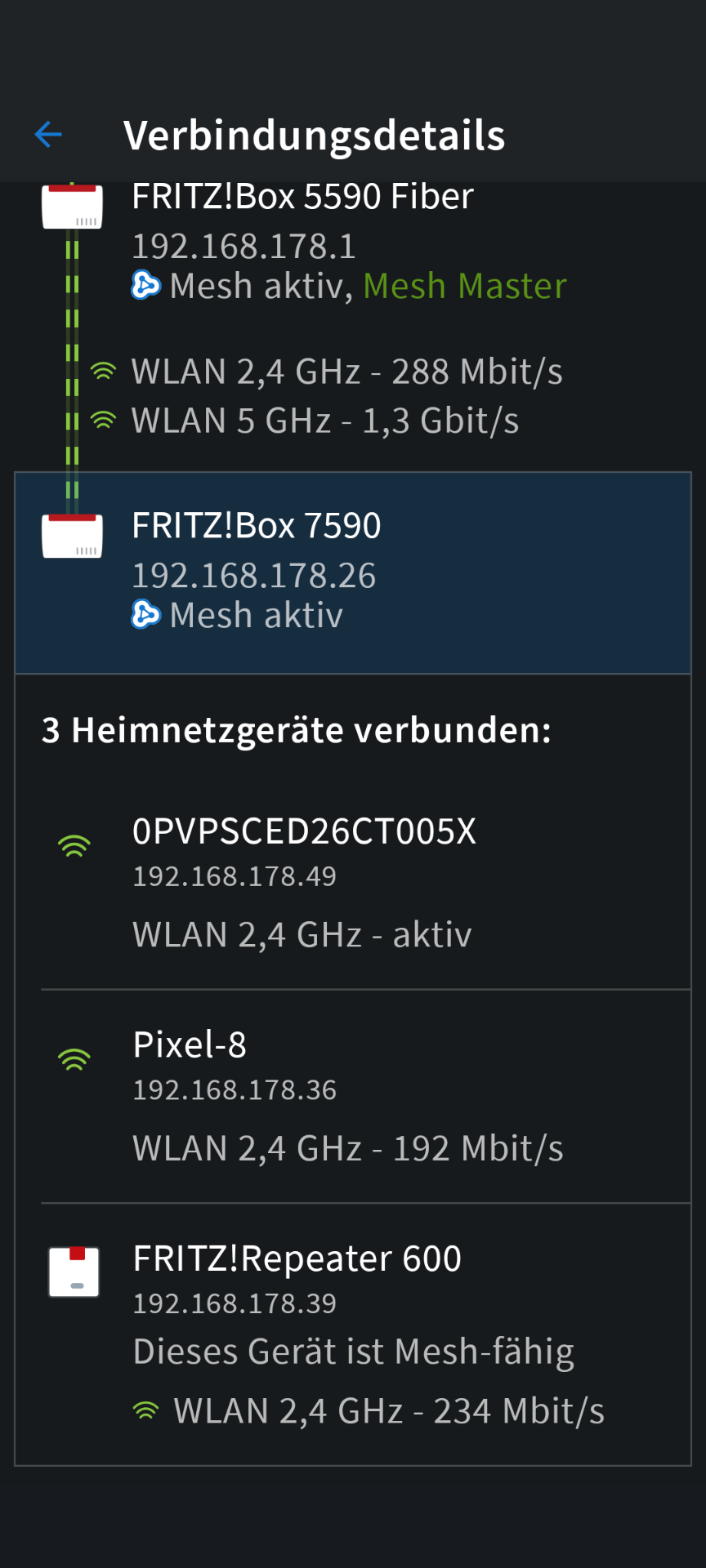 Kannst Du direkt auf die FRITZ!Box zugreifen? Oder nur indirekt über Deine Eltern? Die Frage wäre nämlich, ob der FRITZ!Repeater überhaupt das gleiche WLAN ausstrahlt, also Name, Kennwort und Verschlüsselung.