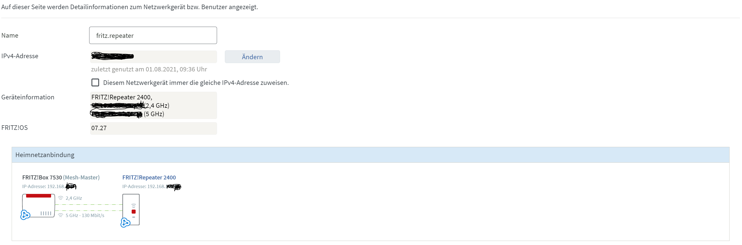 Ich habe den Fritz Repeater 2400 seit nun mehr als ein Jahr. Leider bietet er nicht mehr die Geschwindigkeit die er noch vor ein paar Wochen aufwies von 40Mbit's. Jetzt kann er nur noch max 12 Mbit's bereitstellen irgendwie. Manchmal ist er kurzweilig in der Lage die 40Mbit's wieder zu bieten. für ein paar Stunden manchmal auch nur Minuten. Ich habe alles ausprobiert den Fritz Repeater komplett auf Werkseinstellungen zurückgesetzt und neu konfiguriert. Aber es zeigte sich keine Besserung der Geschwindigkeit von den 12Mbit's. Mir ist aufgefallen wenn ich den Repeater für ein paar Tage ausgesteckt lasse und dann wieder einstecke habe ich wie erwähnt kurzweilig wieder die 40 - 50 Mbit's. Des weiteren sei zu erwähnen. dass ich den Repeater aufgrund seiner Position im Schlafzimmer immer ausstecke bevor ich schlafen gehe. Ohne Repeater erreiche ich 45 Mbit's von 60 Mbit's die am Router anliegen(mit Verbindung über WLan). Habt Ihr vielleicht eine Idee an was es liegen könnte?