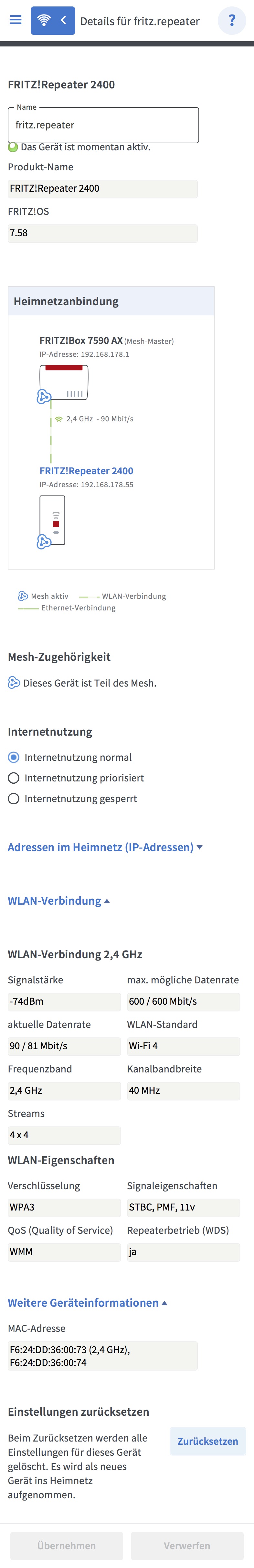 Hier noch die Infos der Verbindung des Repeaters zur Box.