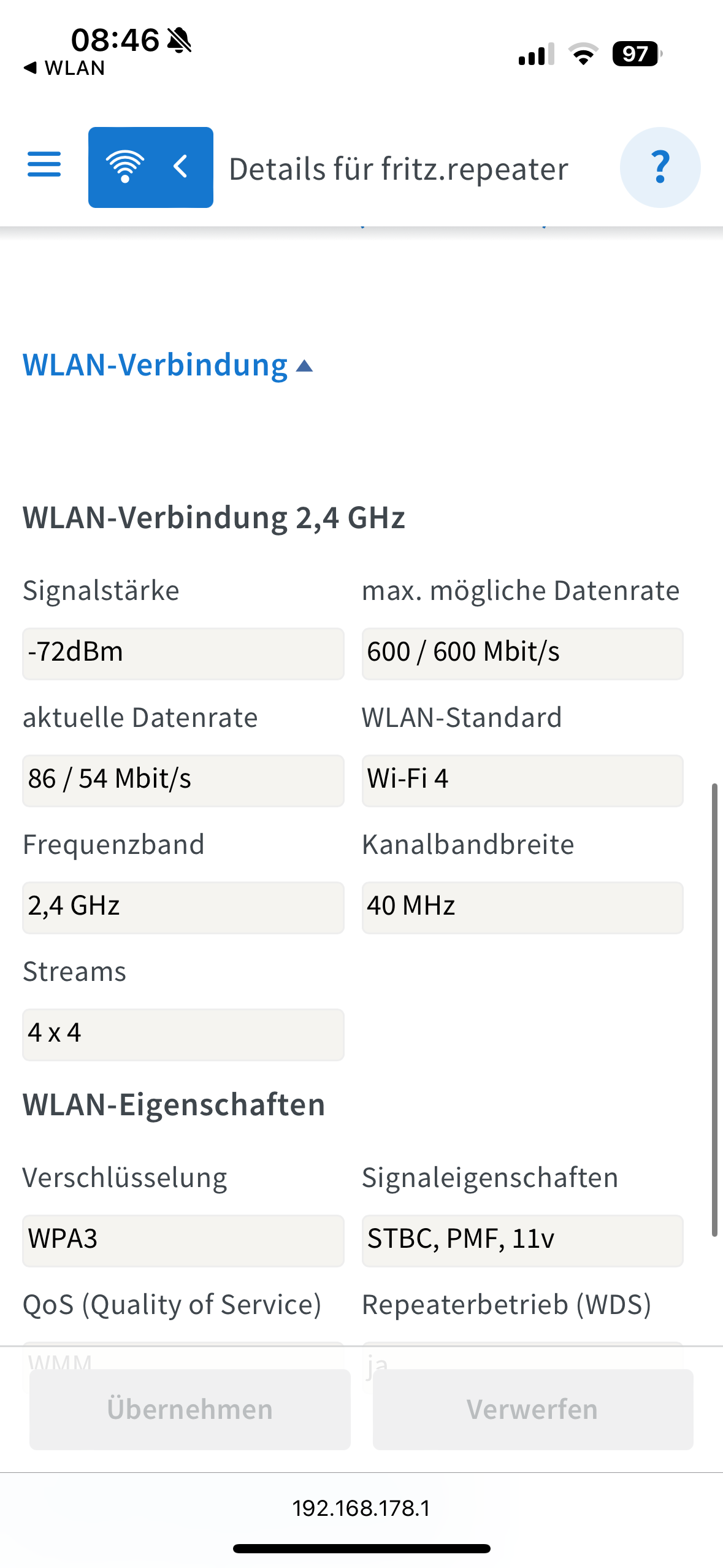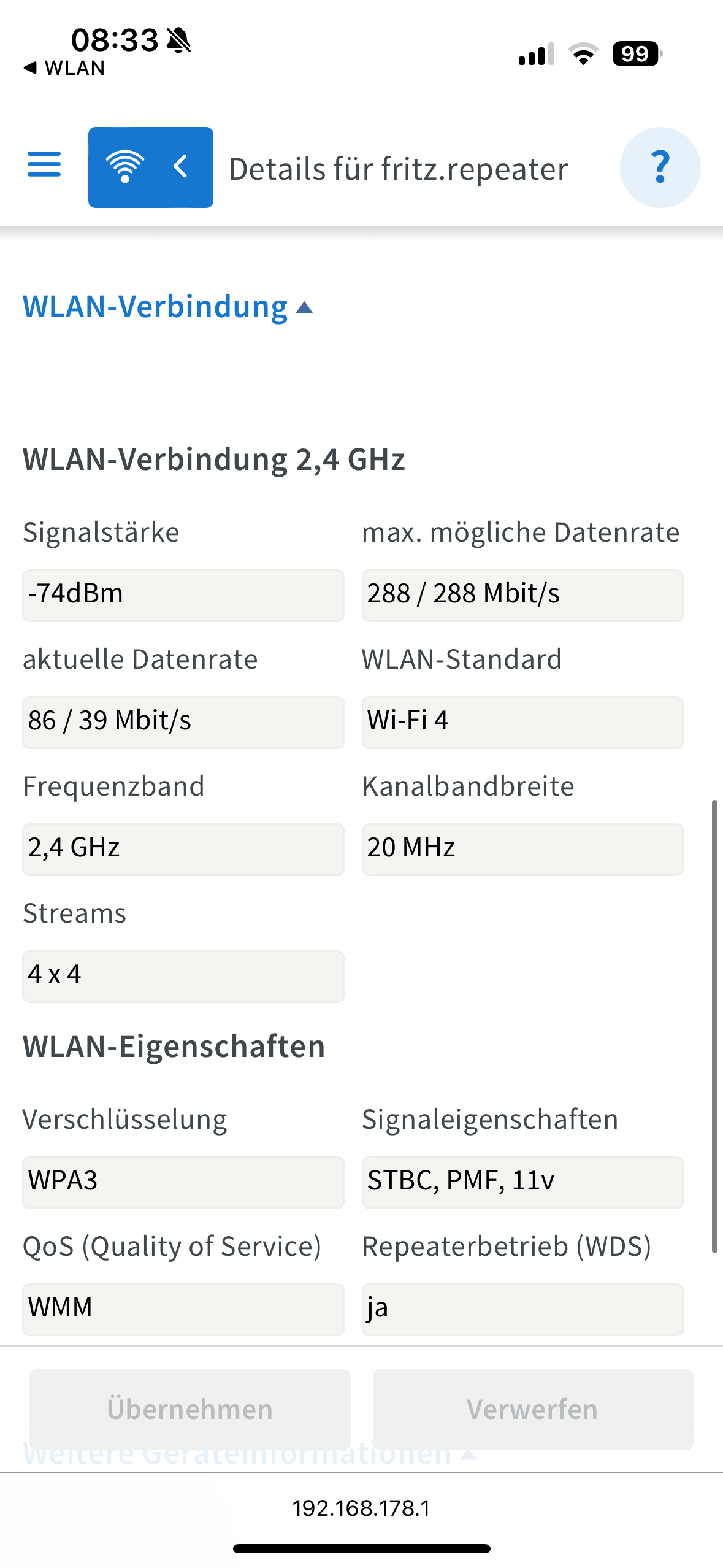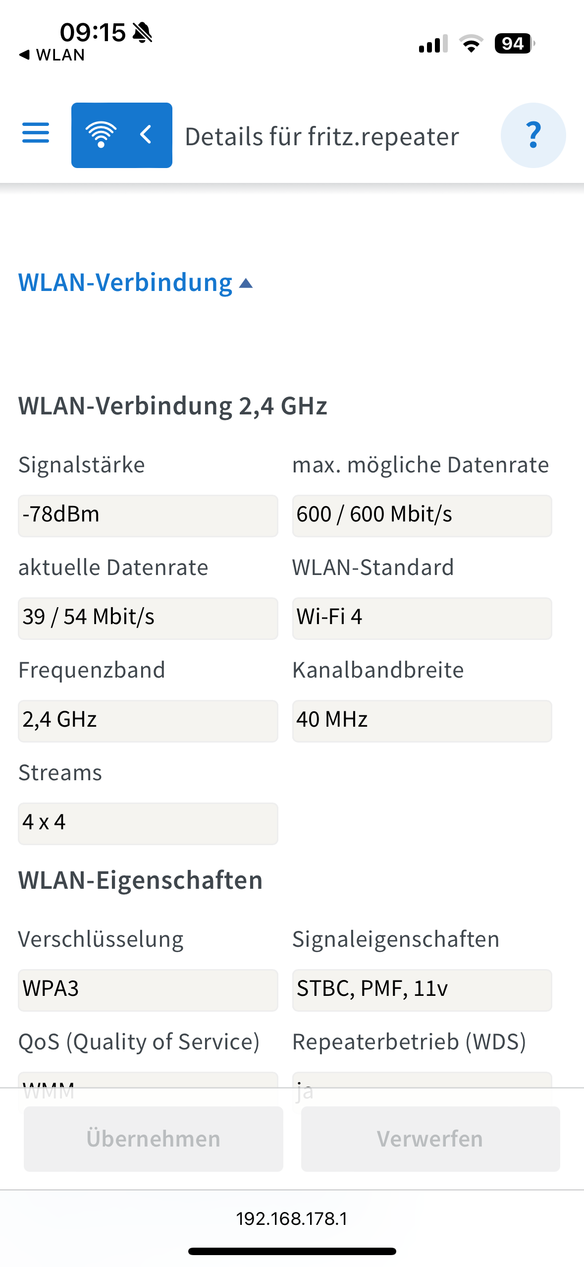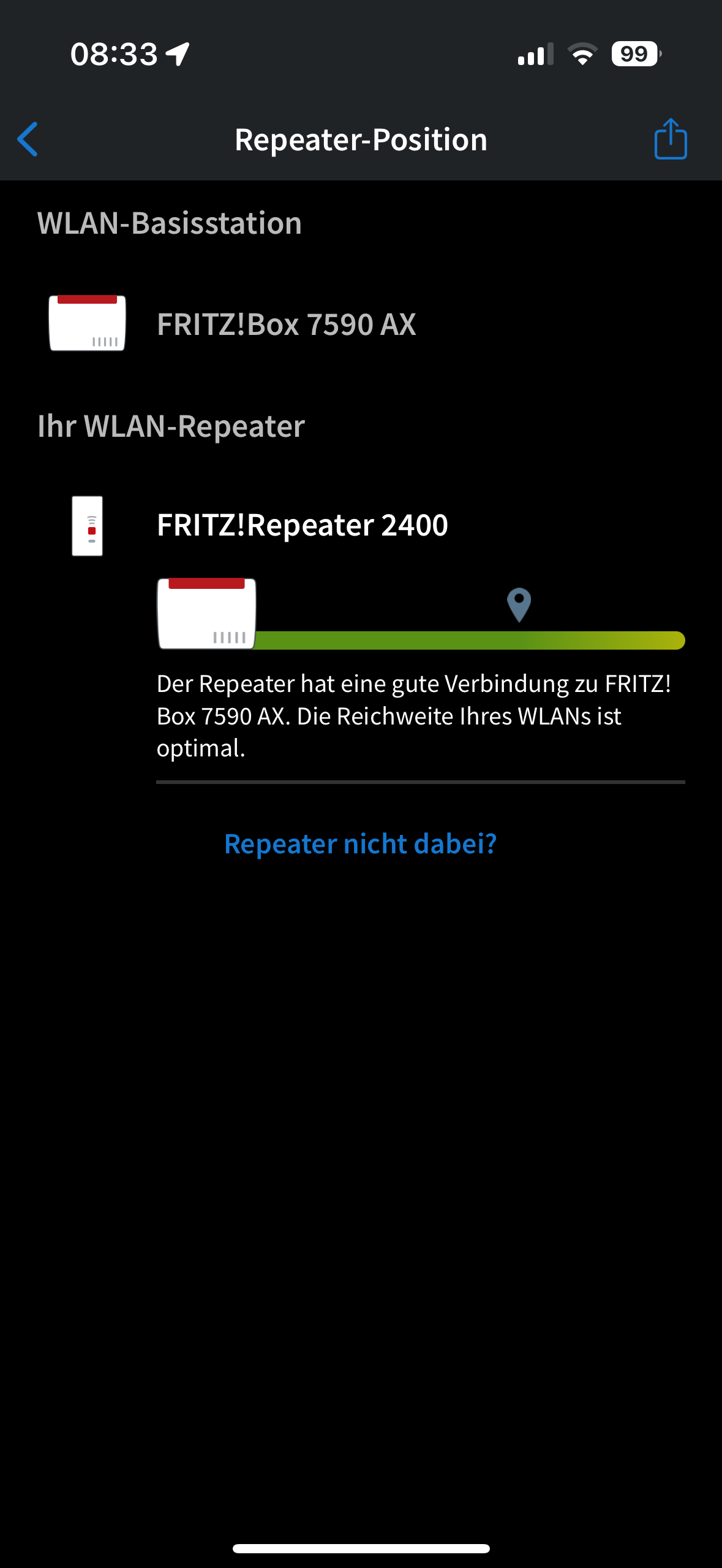 Auf deinem ersten Screenshot sieht man zb schon dass die 2,4 GHz Verbindung von Repeater zur Box schon gar nicht gut ist im Gegensatz zu deiner Behauptung.