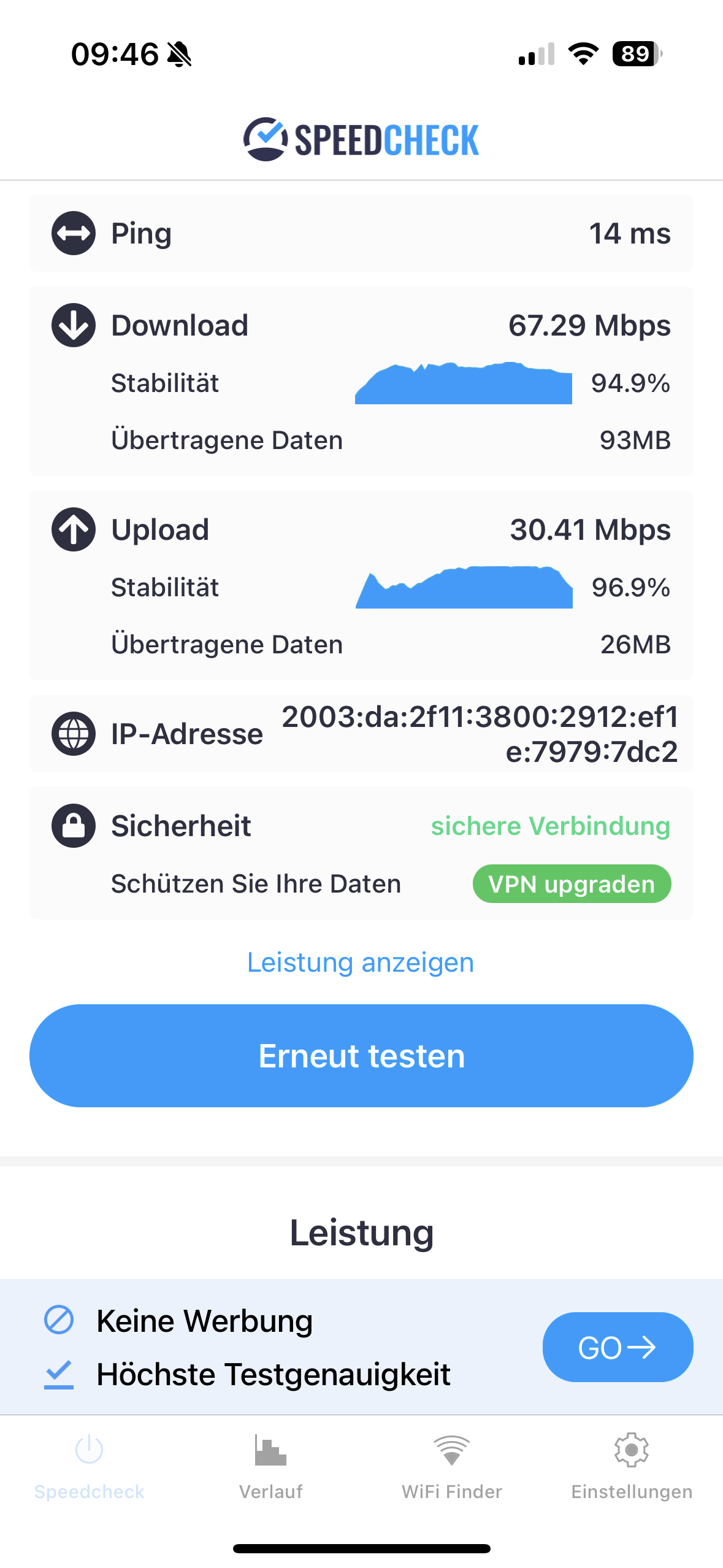 Doch weil 2,4 GHz von sehr vielen Geräten benutzt wird und nicht nur von WLAN, und wenn du sowieso schon im empfangsbereich bist der kurz vor Abbruch ist dann ist das nun mal so.Salmonelle schrieb:Ich war jetzt gerade noch mal in der Garage und vermutlich ist die Aktivität der Nachbarn jetzt weniger und direkt ist auch das Speedtest Ergebnis besser. Wobei es halt trotzdem stark schwank…