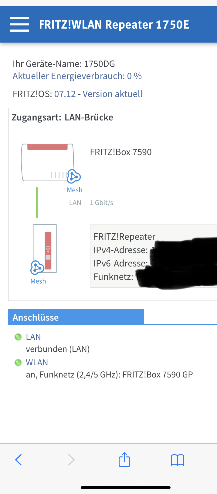 Leider wird die LAN-Verbindung andauern wieder auf 100Mbit gedrosselt. Wenn ich das Netzwerkkabel am Repeater aus- und wieder einstecke, dann habe ich für eine Weile eine funktionierende 1Gbit-Verbindung (schaufelt auch dementsprechend Daten rüber, wird also nicht nur so angezeigt).