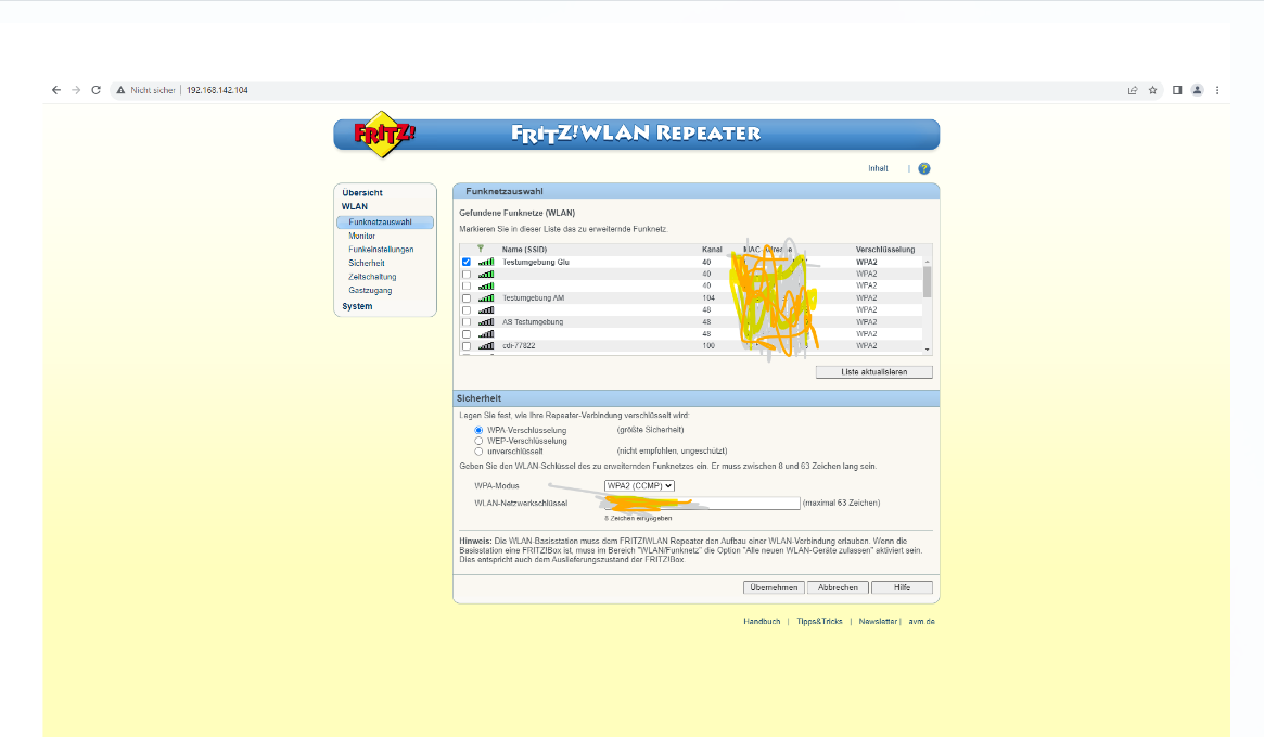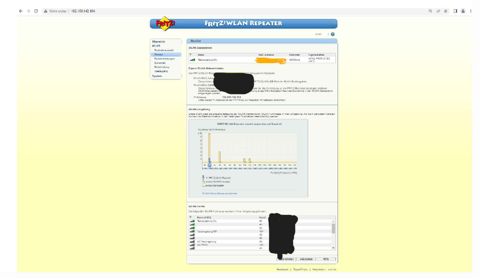 Sicherlich ist es ratsam (und wichtig) persönliche Identifizierungsdaten in Screenshots zu "verstecken", aber hier macht es einfach keinen Sinn die MACs aus einem geschlossenen Lokalnetz, da ja wohl nicht am Internet hängt, oder den WLAN-Key geschweige denn die Protokollmeldungen zu verschleiern - weder wird wohl ein hier Hilfswilliger direkt in unmittelbarer Reichweite des WLANs sein, um dort zu spionieren (oder sonstwas zu tun), noch kann ohne Meldungen ein Anhalt für evtl. vorhandene Probleme analysiert werden. 🤷♂️