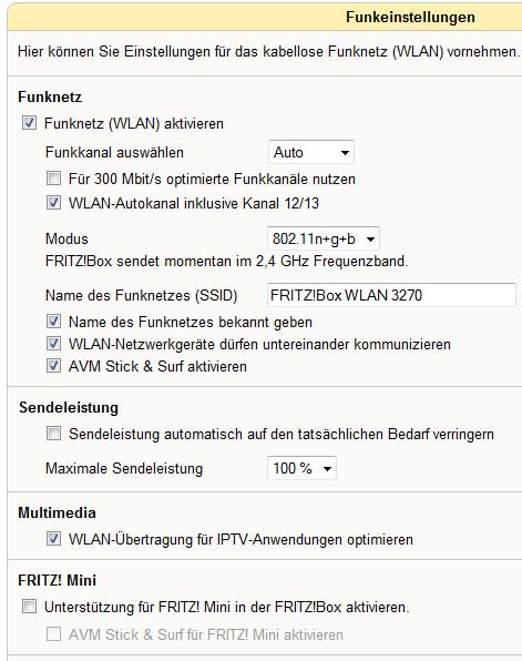letzte Woche habe ich meine "alte" FritzBox mit 125MBit-WLan (keine Ahnung, wie sie hieß) gegen eine neue 3270 ausgetauscht. Seither habe ich das Problem, mit dieser Box irgendeine vernünftige WLan-Verbindung herzustellen. 2 Laptops und ein Internetradio sollen via WLan ins Internet gehen können.