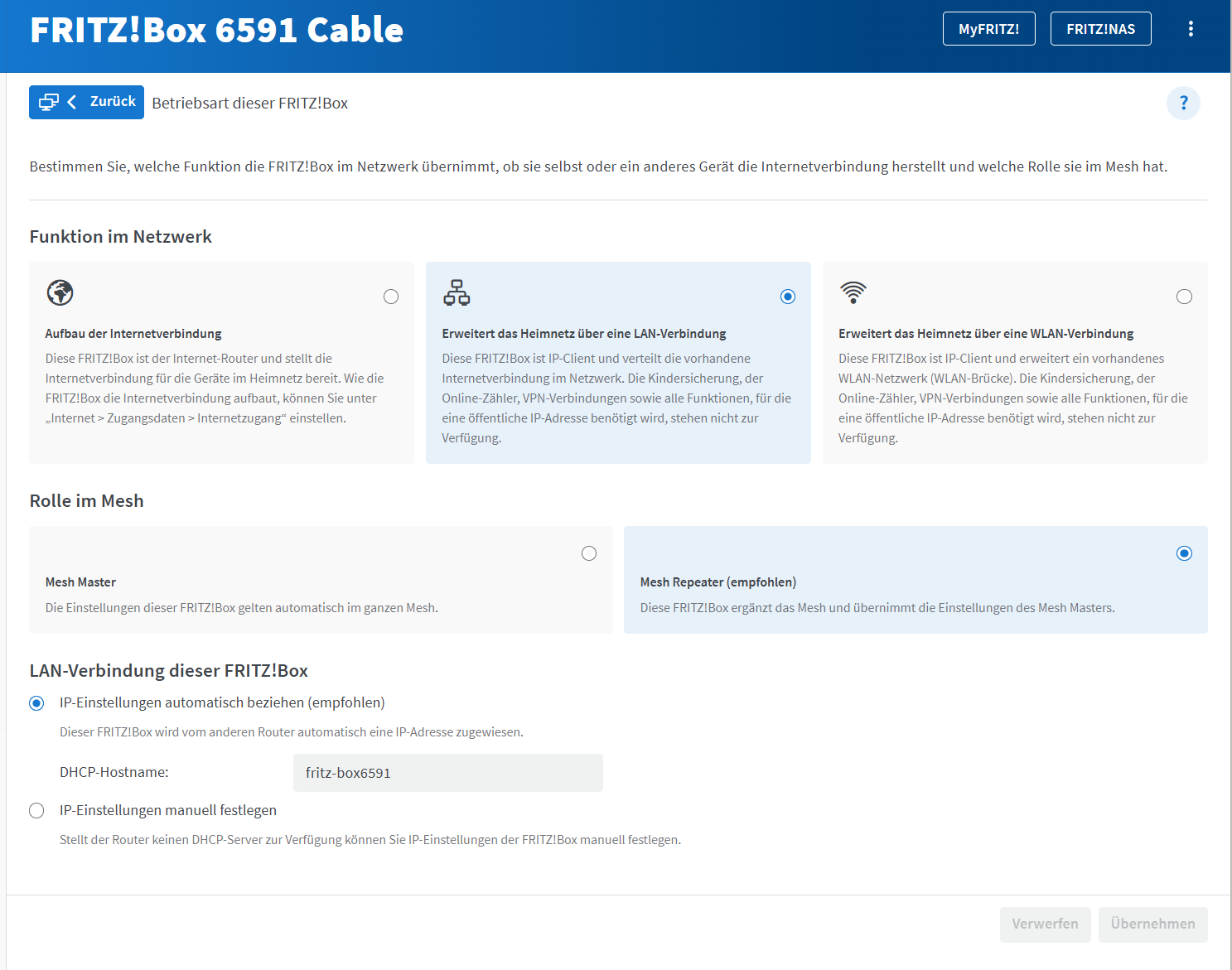 - Soll ich die FritzBox als IP-Client einrichten oder nicht? Und gehört DHCP dann aus?