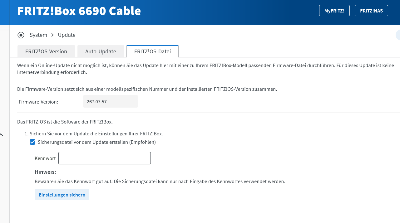 Gibt es eine elegante Möglichgkeit, der 5590 das update schon zukommen zu lassen, obwohl sie noch nicht angeschlossen ist? Was wäre dafür zu tun? Am Umschalttag möchte ich nur schnell den Anschluss in Betrieb nehmen und das Sicherungsfile mit den Basis settings der 7590 in die 5590 spielen und nicht erst noch die 5590 erstmal auf das aktuelle OS bringen.