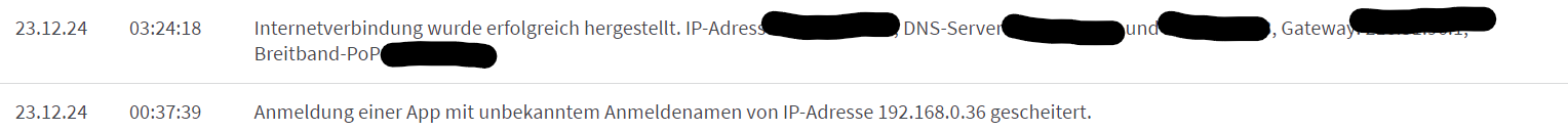 Interessant ist aber der angebliche Anmeldeversuch um halb eins. Das heißt für mich ja, dass sich das Gerät mit der IP Adresse explizit versucht hat an der Fritzbox anzumelden? Die IP gehört zu einer MagentaTV One (1. Gen). Macht für mich keinen Sinn (ist keine Fritz App oder ähnliches drauf installiert, falls die überhaupt für Android TV gibt)