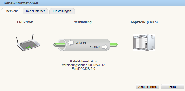 letzte Woche bin ich von der Telekom auf Kabeldeutschland umgestiegen. Bisher hatte ich hier immer nur eine 3k Leitung, aber nun mit KD "bis zu 100k". Natürlich habe ich jetzt auch einen neuen Router und zwar wie oben geschrieben, die Fritzbox 6360 Cable, mitgeliefert. Nachdem alles angeschlossen wurde, wollte ich natürlich erstmal alles ausprobieren. Da mein PC zwei Etagen über dem Router steht, muss ich (leider) W-Lan benutzen und genau da ist das Problem. Das Signal verliert extrem an Stärke. Hier oben kommen "nurnoch" ca 900k/bits an. Also habe ich momentan den Router mit dem PC per 30 Meter Lankabel verbunden. Nun passt alles, es ist schnell genug (ca. 80 000k!). Nur habe ich das Problem, dass auch andere Geräte mit dem Internet verbunden werden müssen. Komischerweise ist das Signal hier oben nicht nur schwach, sondern manchmal ist das Internet komplett weg. Zwar besteht dann noch eine ganz gute Verbindung von z. B. PS3 und Router (80% Signalstärke), aber es gibt keine Internetverbindung. Mit dem PC das Gleiche. Mal habe ich 1000 k/bits, manchmal aber auch 0. Das ist wie Lotto spielen.