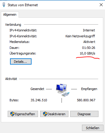Das nächste Kuriose ist, wenn ich per WLan Endgerät (iPhone 6S) einen speedtest mache komme ich auf ca. 260MBit/s. Die Leitung scheint also zu existieren nur per LAN kann ich diese nicht erreichen.