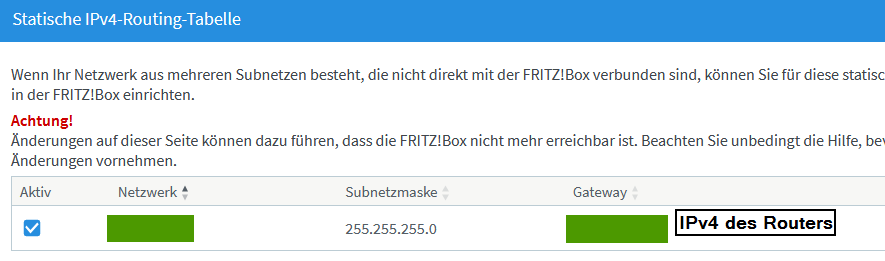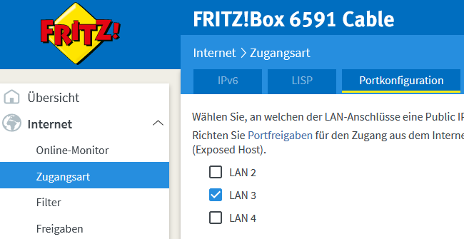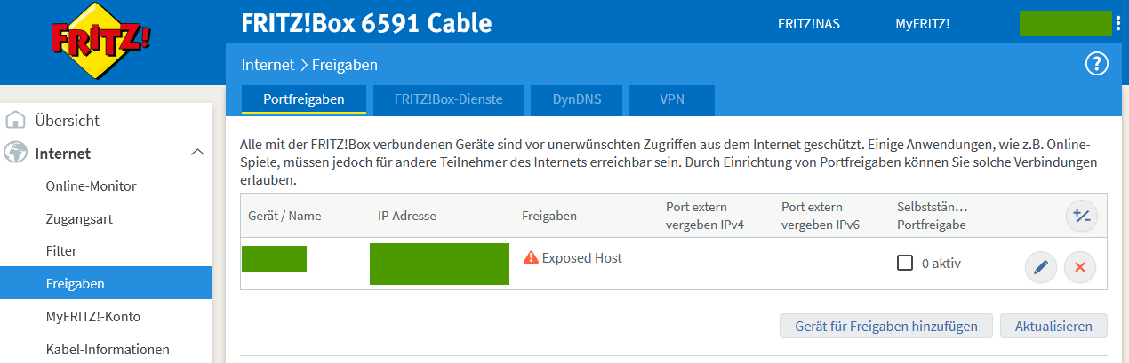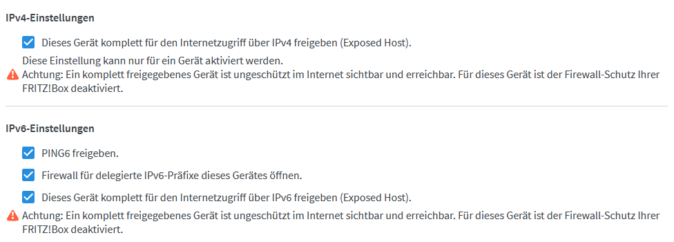Kann es sein, dass auch noch eine IPv6-Route gesetzt werden muss? In den Freigabeeinstellungen ist der eigene Router bereits als exposed host gesetzt.